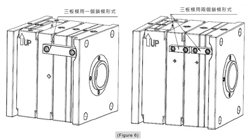 模具鎖模塊或鎖模片(Mold opening prevention plates),指的是安裝於模具外側(通常為模座側邊)的一組機械式鎖定裝置(Figure 1),其主要目的是: