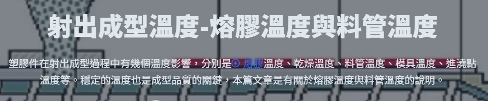★★★★★【射出成型溫度-熔膠溫度與料管溫度(按圖超連結文章)】★★★★★