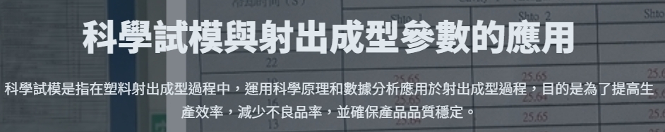 科學試模是指在塑料射出成型過程中,運用科學原理和數據分析應用於射出成型過程,目的是為了提高生產效率,減少不良品率,並確保產品品質穩定。(按圖超連結文章)。