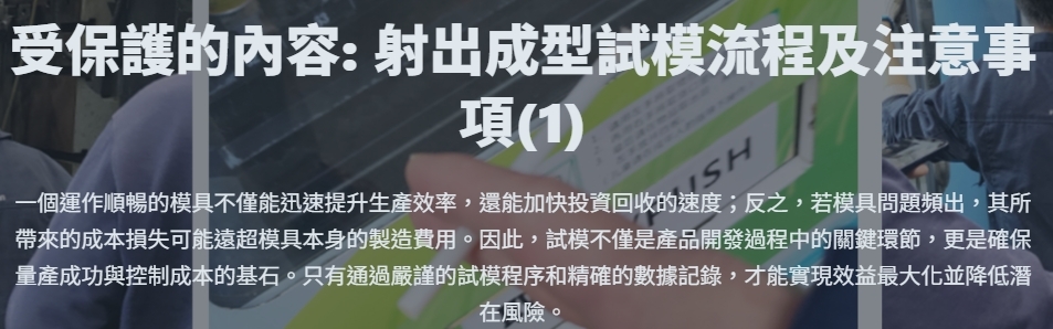 一個運作順暢的模具不僅能迅速提升生產效率,還能加快投資回收的速度;反之,若模具問題頻出,其所帶來的成本損失可能遠超模具本身的製造費用。因此,試模不僅是產品開發過程中的關鍵環節,更是確保量產成功與控制成本的基石。只有通過嚴謹的試模程序和精確的數據記錄,才能實現效益最大化並降低潛在風險。(按圖超連結文章)。
