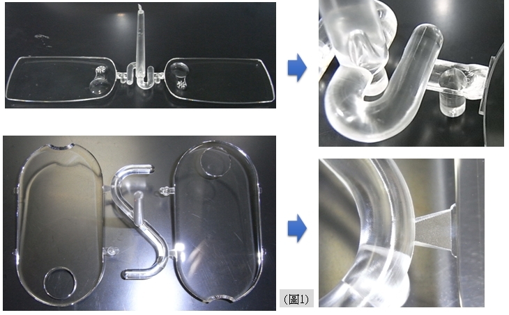 當模具鉗工的時候,我就經常接觸到S型流道。那個時候,手機仍然是傳統按鍵式設計。每當我接到要做Lesn的模具時,模具圖面上的流道設計幾乎都是S型流道形式(圖1)。在Lesn射出成型後,要做印刷前,還要拿去烤箱烘烤做退火處理,避免印刷時產生應力龜裂。那時候Lens所使用的塑膠材料不是PC透明,不然就是PMMA。